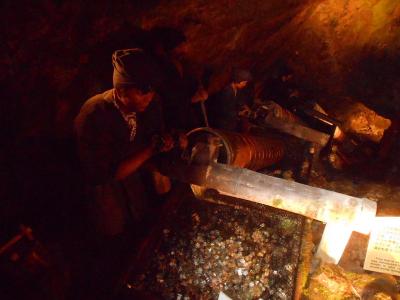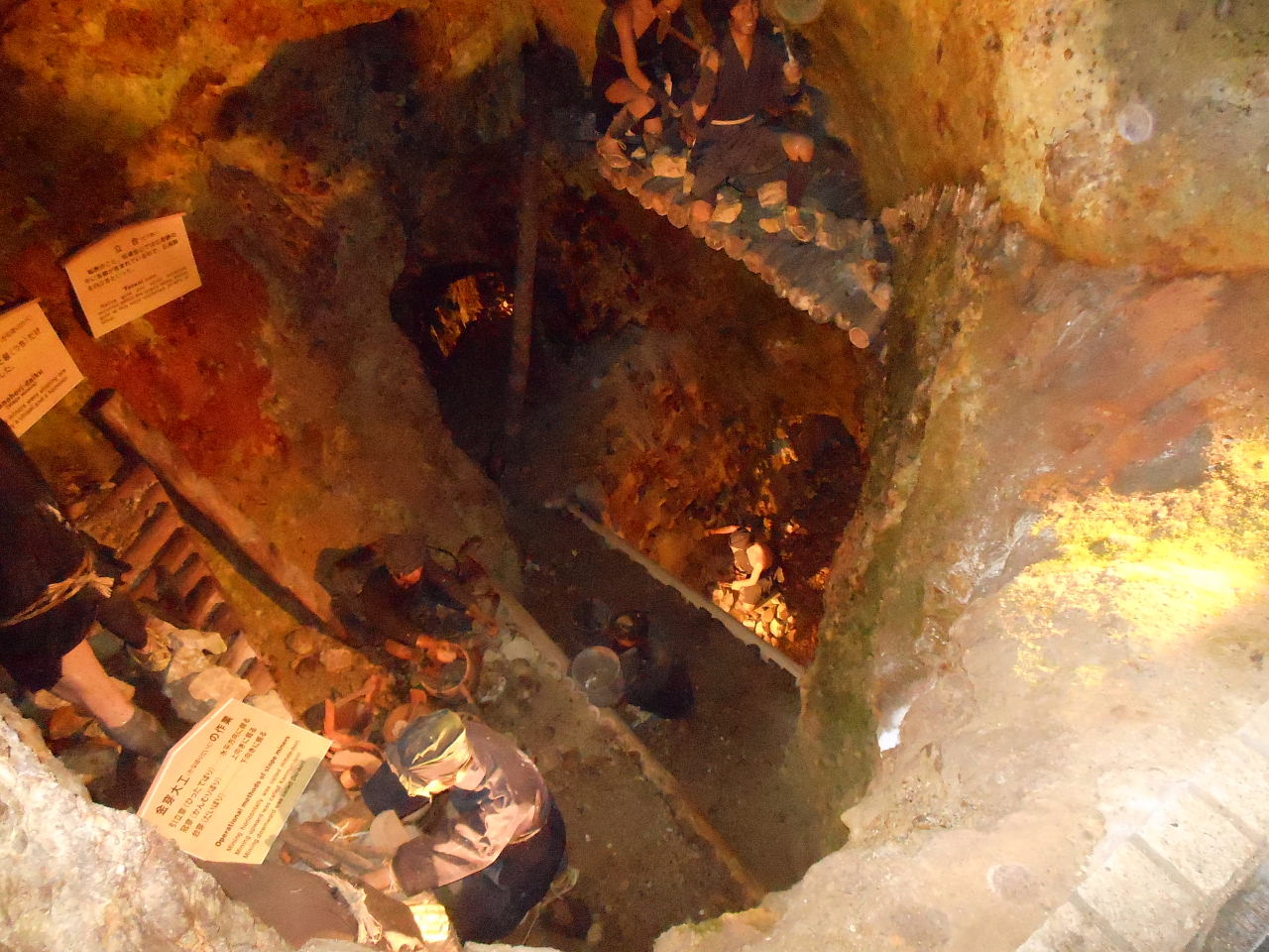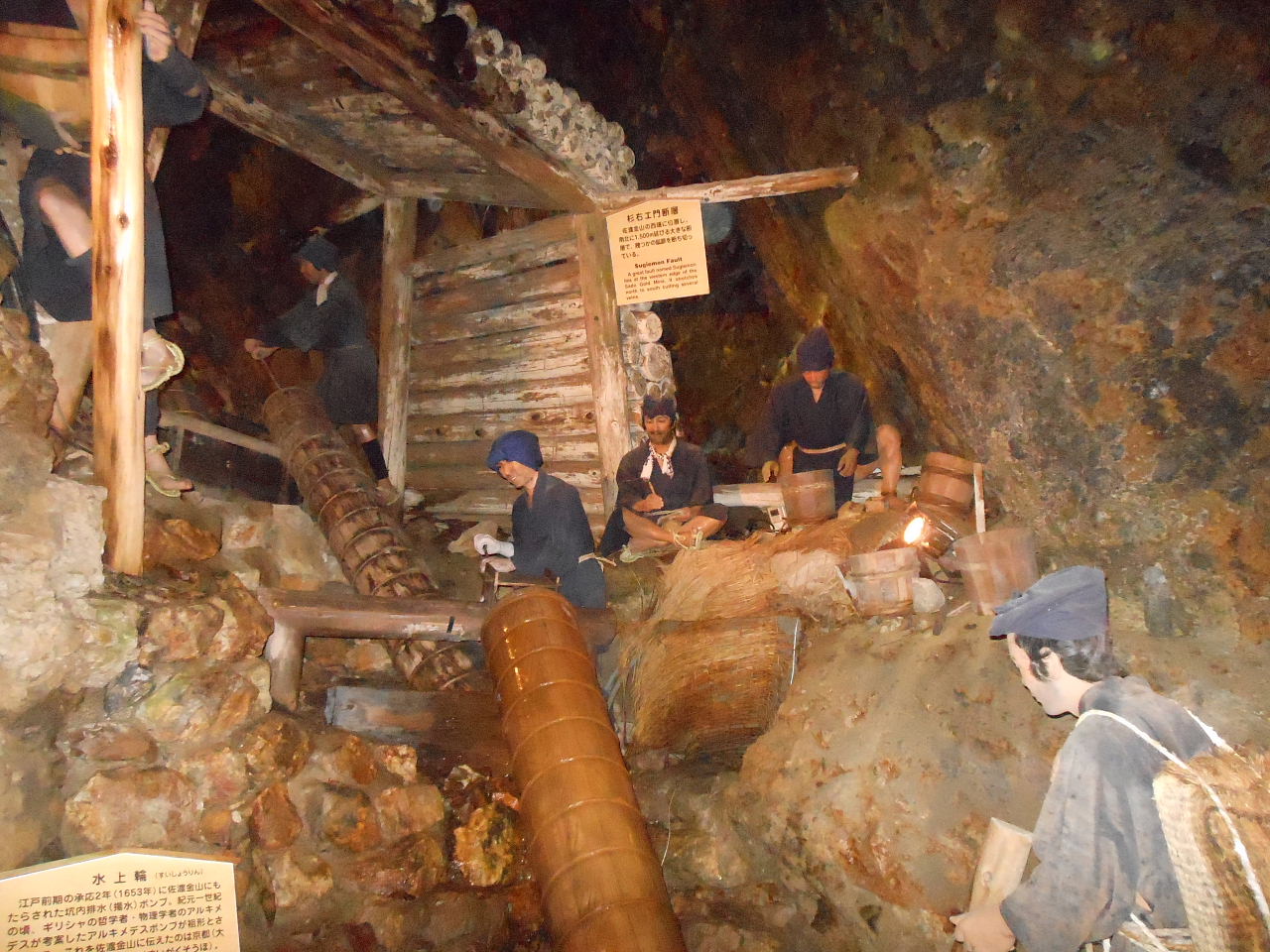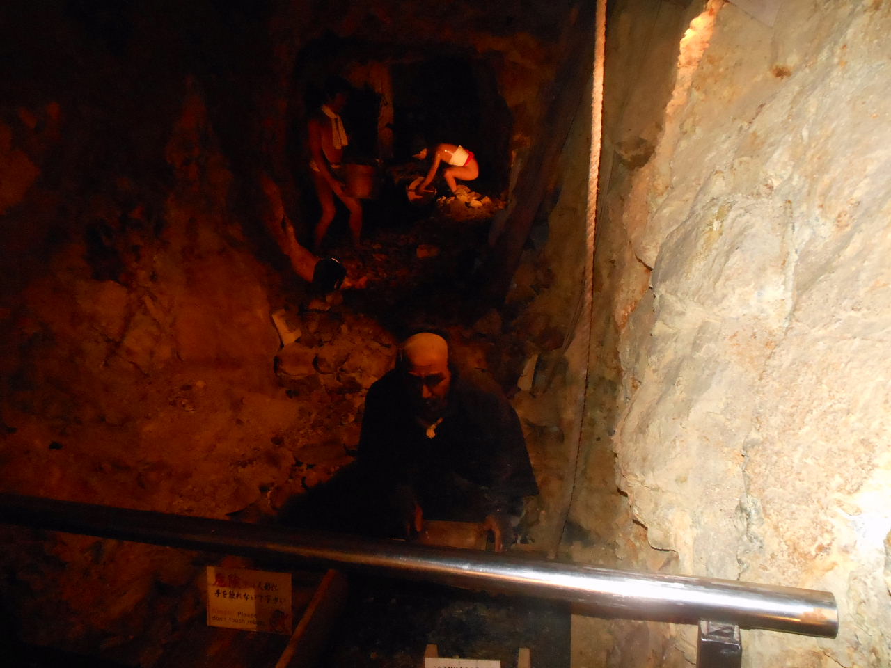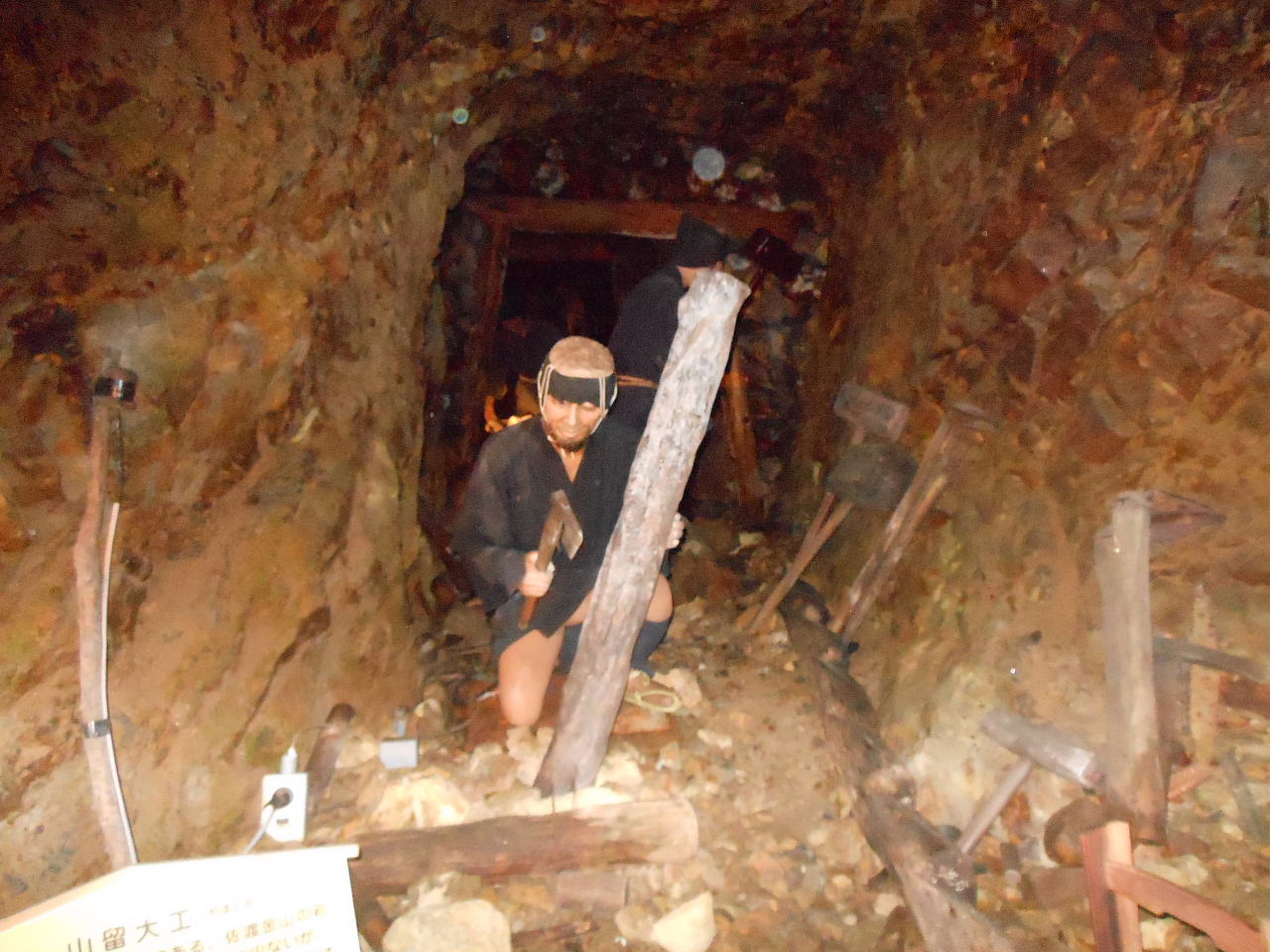 江戸時代の金採掘の様子を、当時の金山絵巻などの歴史資料を基に忠実に再現しているそうです。坑道延長は約280mで、通行は一方通行です。
