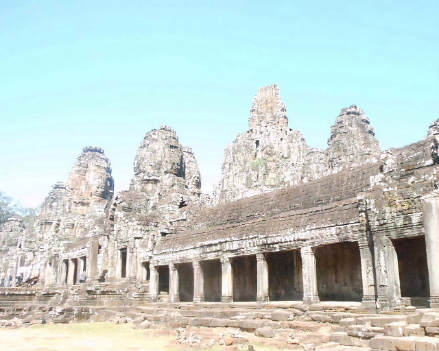 バイヨン寺院には、巨大な観世音菩薩の四面塔が聳えて圧倒されます。
