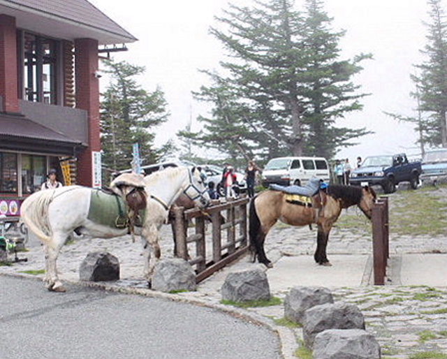 五合目駐車場から登山道ゲートを超えると里見平という外界の開けた場所があり、晴れていれば眼下に山中湖、富士吉田市、河口湖と一望できます(希望者は乗馬にて行けます)。さらに遠方には日本アルプスが雄大に横たわっています。