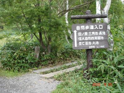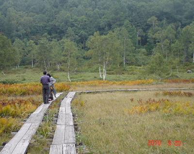 私達は、木戸池から田の原湿原を通って信大自然教育園まで歩きました。