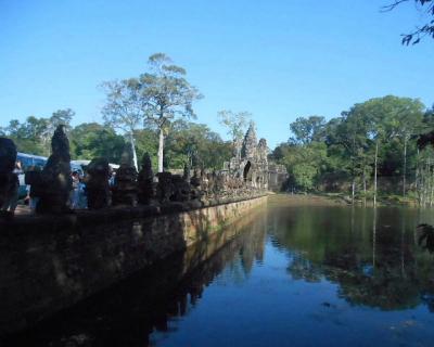 アンコール・トムは、カンボジアのトンレ-サップ湖の北にあるクメール人の王城遺跡で、12世紀末にクメール王朝のジャヤヴァルマン7世が創建した城砦都市遺跡です。
