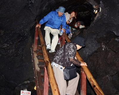 観光ツアーに参加して、鳴沢氷穴を訪れました。