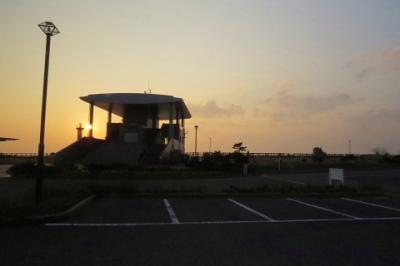 ちょうど、きれいな夕陽が見られる時間帯でしたが、残念ながら海面に霧が残り、すっきりした遠望は見られませんでした。天候が良い日は遠く富士山や筑波山も見られるそうです。展望館からは、先程までバードウォッチングを楽しんだ飯岡漁港も間近に見られます。