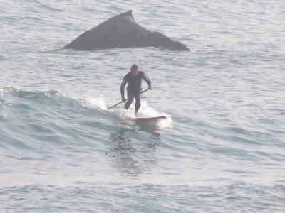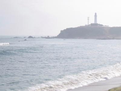 がっかりしながらも、帰宅前に気晴らしに君ヶ浜海岸をブラブラしていたら、一人でサーフィンを楽しんでいる人がいました。海上は少し霧が出て視界はあまり良くありませんでしたが、少しは気分転換できました。