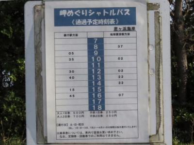 ふと、バス停を見たら「岬めぐりシャトルバス」という案内表示がありました。