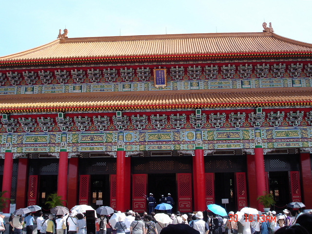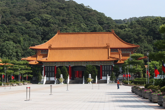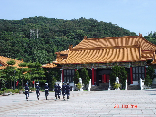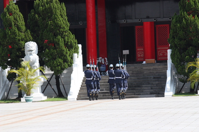 忠烈祠とは、政府が国家の祭典を行い、忠義の精神を表彰し、国のために殉難した烈士を追悼するところです。現在の忠烈祠は、1969年に故宮の大和殿を模して建設されたもので、辛亥革命や抗日戦争などで国のために斃れた約33万人の英霊が祭られているそうです。日本統治時代は、台湾護国神社が当地に建立されていたそうです。