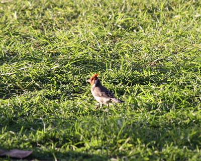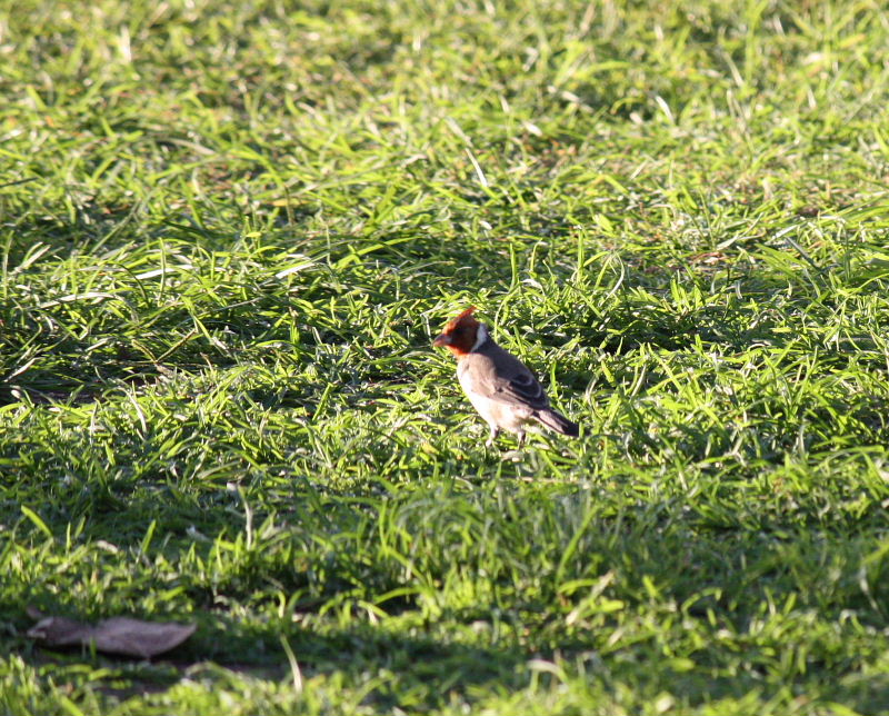 コウカンチョウ(紅冠鳥、英名:Red-crested cardinal)は、スズメ目ホオジロ科の野鳥で、冠羽から顔、喉にかけての羽毛が鮮やかな赤色でたいへん目立つ鳥さんです。自然分布地域は、アマゾン以南のブラジル、ボリビア、アルゼンチンだそうです。ハワイのコウカンチョウは移入されたものだそうです。