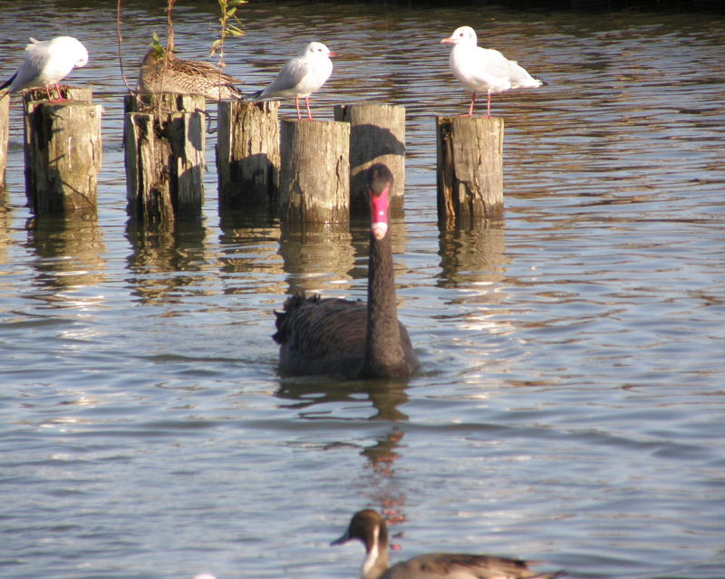 コクチョウは、茨城県でも水戸市の千波湖では以前から見られましたが、北浦で見られたのは始めてかも知れません。ひょっとすると、千波湖から飛来したのではないかとの事でした。水原の白鳥飛来地には、オオハクチョウやコブハクチョウも飛来してきていました。- 旅行時期