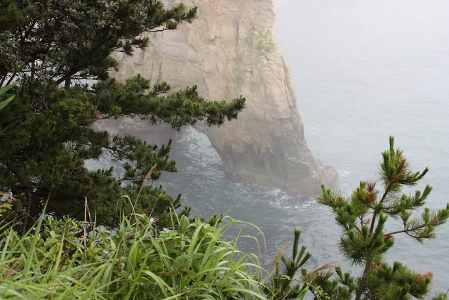 私達が訪れた時は霧が出て、少し幻想的な雰囲気で、海岸の岩場にはウミウ(海鵜)も見られました。