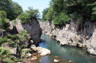 厳美渓は、岩手県一関市にある磐井川の中流にある全長2kmの渓谷で、1927年に国の名勝及び天然記念物に指定されたそうです。