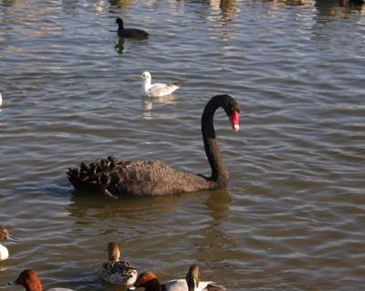 コクチョウ(黒鳥)は、カモ目カモ科ハクチョウ属に分類される鳥で、「ブラックスワン」(Black swan)とも呼ばれるそうです。元々の自然分布地域はオーストラリアで、白鳥のように渡りをしません。日本では移入種だそうです。