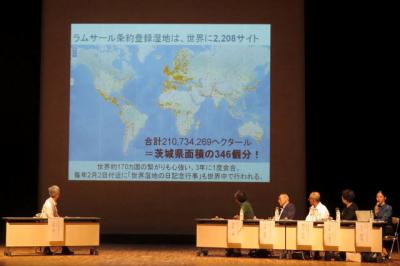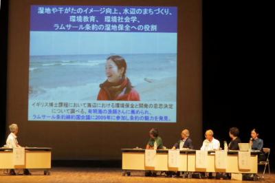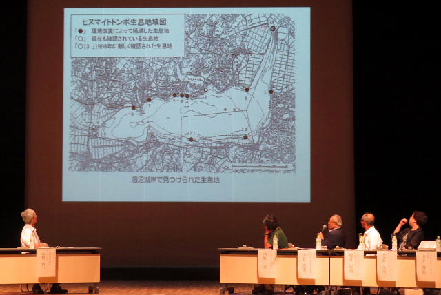その後、パネリストによる「絶滅危惧種ヒヌマイトトンボ」の説明と、「ラムサール条約の魅力」について、スライドを使って説明がありました。