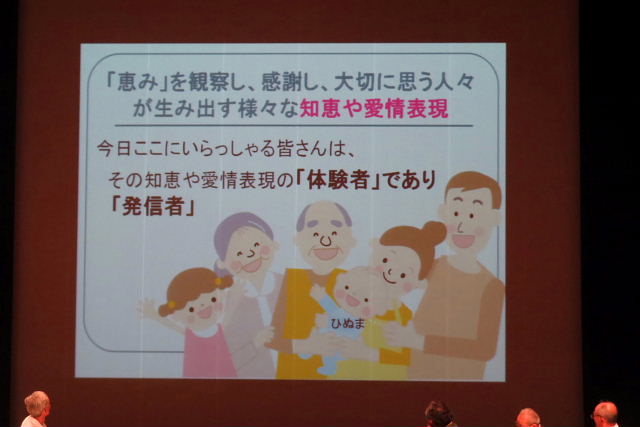 柳生博さんの講演は、さすが俳優さんだけあって、身振り手振りも大きく、楽しく講演されていました。