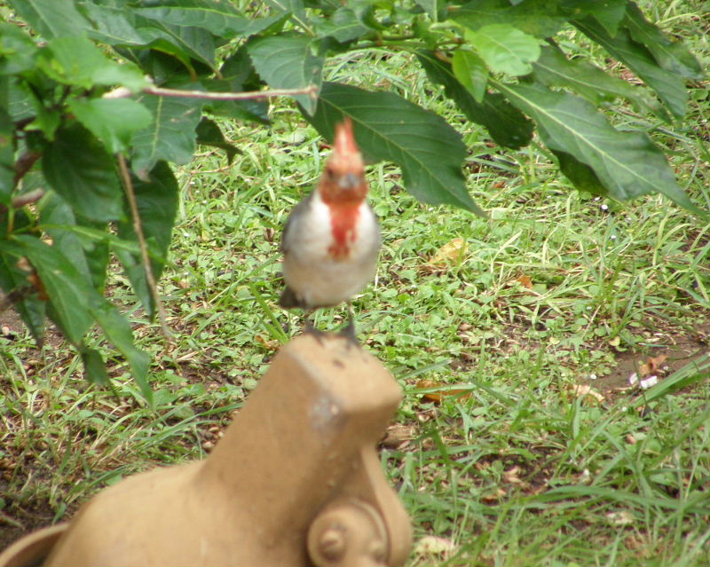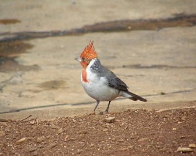 コウカンチョウ(紅冠鳥、英名:red‐crested cardinal)は、スズメ目ホオジロ科の鳥で、全長約19cm、モズより少し小さい。羽色が美しいので,古くから飼鳥として輸入されているそうです。原産国は、ブラジル南部からボリビアおよびアルゼンチン中部にかけて分布する鳥だそうですが、ハワイでも移入種として見られます。