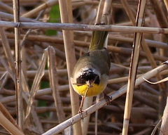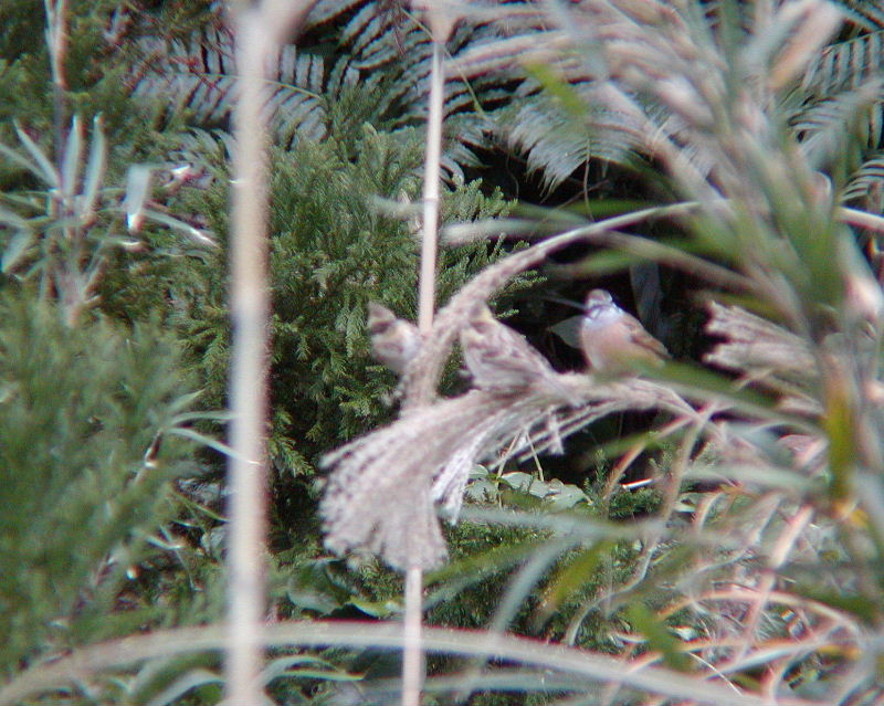 お目当ての珍鳥カオグロアメリカムシクイが出たのは16時過ぎでしたが、葦原の中から出てこないので、うまく撮影できません。一瞬、葦の間に出たのでシャッターを切りましたが、カメラのピントが自動のままだったので、手前の葦にピントが合ってしまい、お目当てのカオグロアメリカムシクイはピンボケでした。その後もシャッターチャンスが無く、やむなく、友人K氏が一眼レフカメラで撮影したものを、今回、本人の許可を得て掲載しました。Kさん、ありがとうございます。- 旅行時期