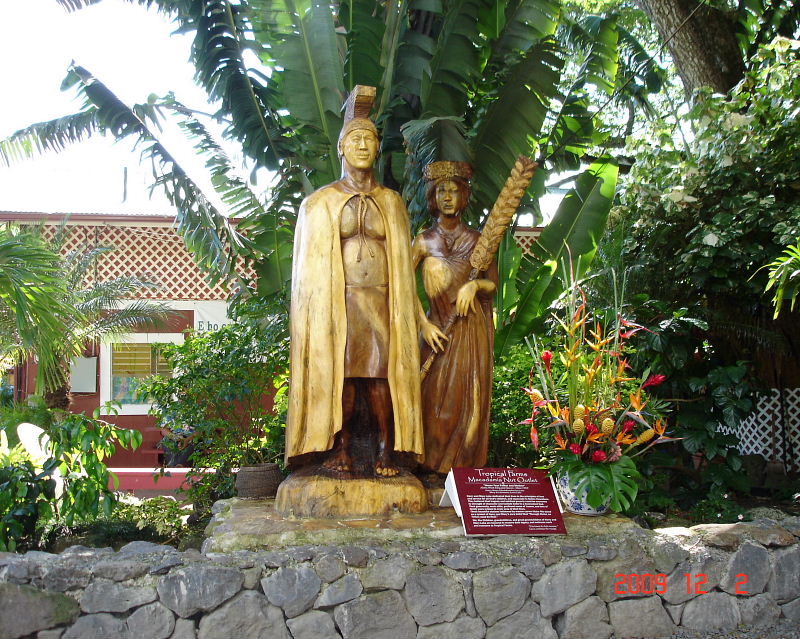 トロピカルファームは、オアフ島東側にあるマカダミアナッツの農場、アウトレットです。お店の入口付近に大きな銅像が建っていました。カメハメハ大王の銅像なのかと思って調べてみたら、1959年に行われたアロハウイークで王と女王に選ばれたハリーさんとメアリーさんという方の銅像だそうです。