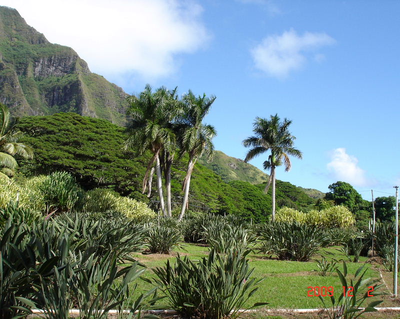 旅行社のオアフ島観光ツアーに参加して、オアフ島一周観光の途中でモアナルア・ガーデンに立ち寄りました。