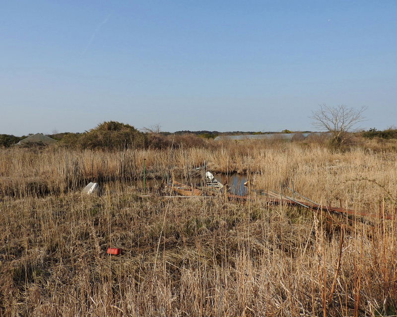 涸沼川が涸沼に流れ込む涸沼大橋東側の葦原に、珍鳥カオグロアメリカムシクイが出ているとの情報を戴き、見に行ってきました。