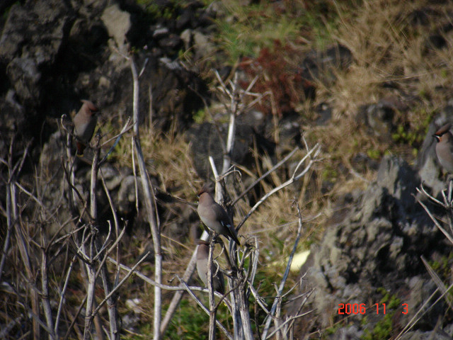 石川県の舳倉島に、友人と一緒にバードウォッチングに行った時、キレンジャクを見てきました。