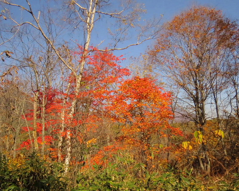 戸隠高原での一泊探鳥会に参加した時、戸隠森林植物園にも立ち寄りました。紅葉がきれいでした。