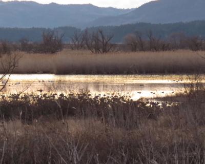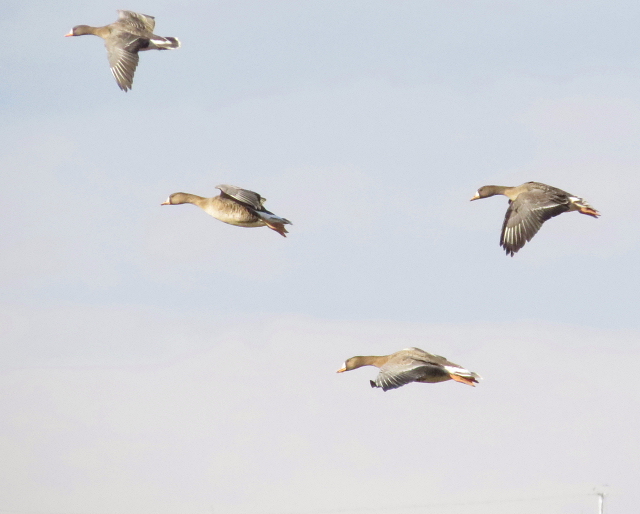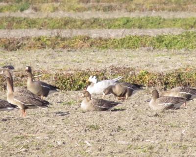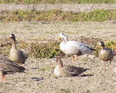 - マガンの群れと、珍鳥インドガンは見応え十分です。