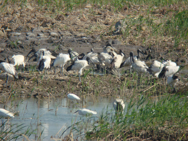 日本では珍しいクロトキが見られたので質問したら、アフリカクロトキという種類だそうで、飼育されていた鳥が逃げ出して野外で繁殖し増えたものだそうです。