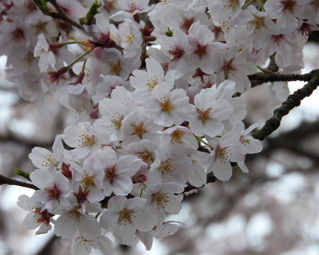 桜の開花状況は、満開の樹もあるけど蕾のままの樹もありで、平均して7分咲かな?