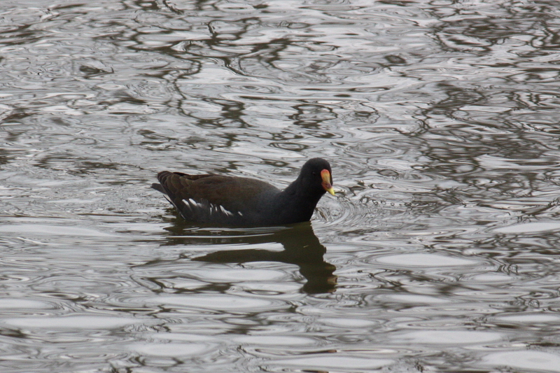 バン(鷭)は、一見、黒い鴨さんに見えますが、鴨の仲間ではなくクイナの仲間です。