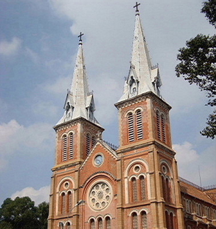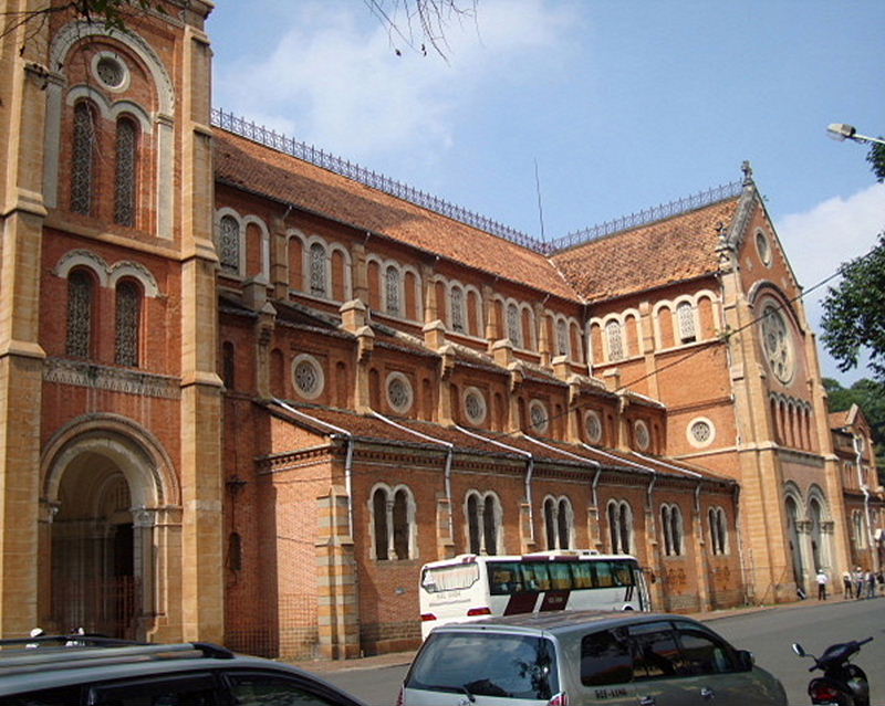 サイゴン大教会(聖母マリア教会)はカトリックの大司教座大聖堂で、フランス植民地時代に建材、資材を全て本国フランスのマルセイユから取り寄せて建築したコロニアル建築です。建築様式はネオゴシック様式だそうです。