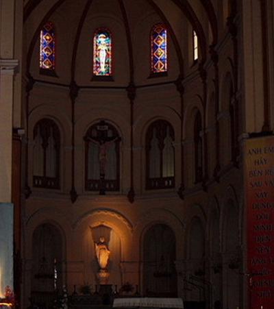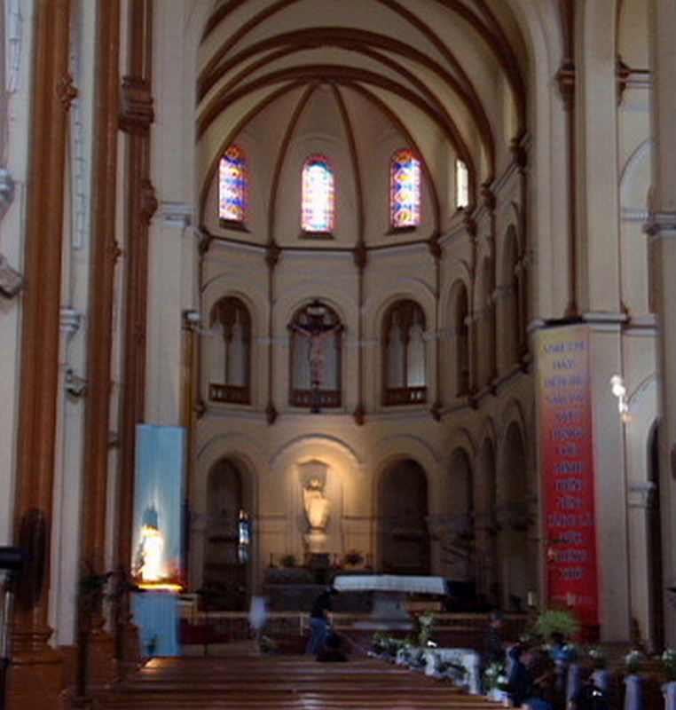 ドンコイ通りの終点で、観光地にもなっているサイゴン中央郵便局のすぐ傍ですので、近くにお出かけの際には、こちらのサイゴン大教会の見学もお勧めします。但し、教会内部に入れるのは8時〜10時30分と15時〜16時のみだそうです。