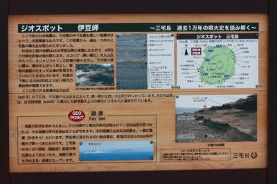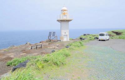 伊豆岬は、雄山と海岸線が眺望できる島北西端の岬で、明治42年に建造された石造4角形の伊豆岬灯台が趣きを添えています。天気のいい日は新島、神津島や遠く富士山を望む事もできるそうですが、私達が訪れた時は視界があまり良くありませんでした。
