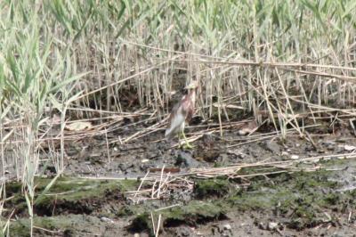 今回、アカガシラサギが確認された場所は、葛西臨海公園の鳥類園ウォッチングセンターの近くにある下の池(汽水池)との事でしたが、私達が到着した時はまだいなかったので、他の野鳥を観察して様子を見ていたら、しばらくして下の池に飛んできました。