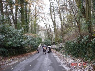 中世の面影が色濃く残っている街並みなので、道路も狭く、観光バスも乗り入れできないとの事で、駐車場から10分程度歩かなければなりません。初冬の11月下旬に訪れたので、雪が降っていて道路が滑りやすかったです。