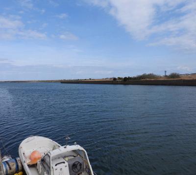 利根川河口部は、波崎側のかもめ公園の近くに中洲があり、波崎側は水路になっていますが、今回、ビロードキンクロが見られた場所は、この水路側の中洲付近です。