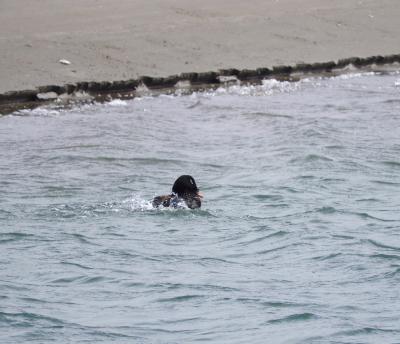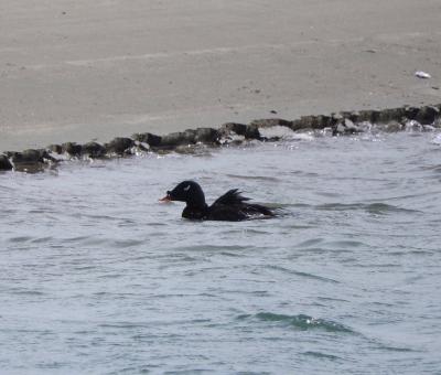 神栖市波崎でバードウォッチングを楽しんだ時、利根川河口付近で、ビロードキンクロのオスを見ました。