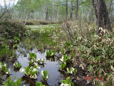 クラブツーリスム(旅行社)のバスツアーに参加して尾瀬ヶ原に行った時、ミズバショウを見てきました。