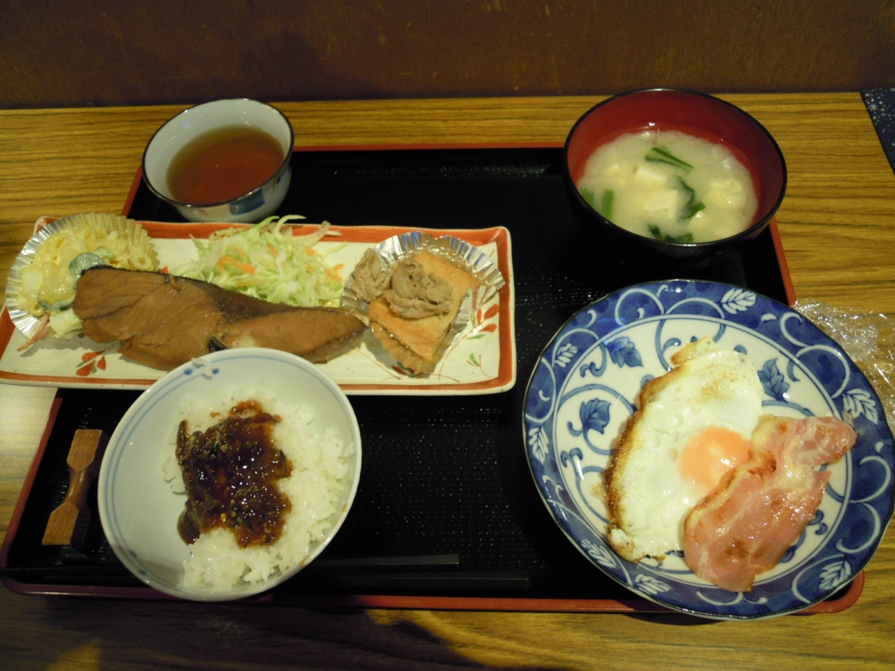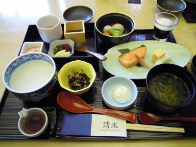 朝食はB1Fのビュッフェか、1Fのレストラン「清水」で、我々は「清水」で和食膳を選択、少々物足りなさを感じたが、会場の雰囲気は申し分なし。