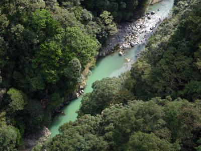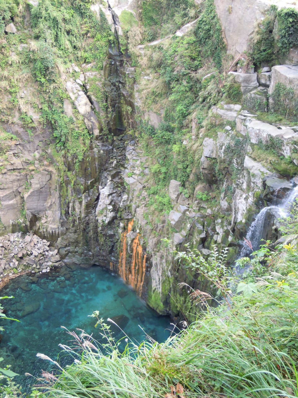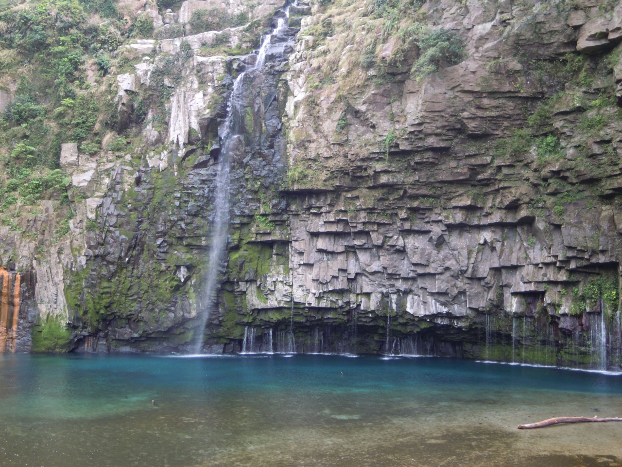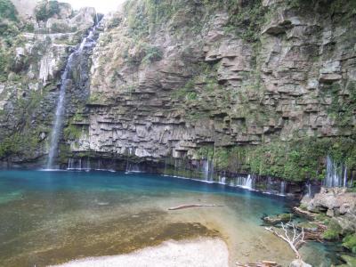 さらに車で滝壺へ移動、駐車場から綺麗に整備された遊歩道(アップダウンあり)を早足で歩くこと15分、柱状節理?の岩肌を一筋の滝が勢いよく流れエメラルドグリーンの滝壺に注いでいる。幻想的でみごとな景観でした。- 旅行時期