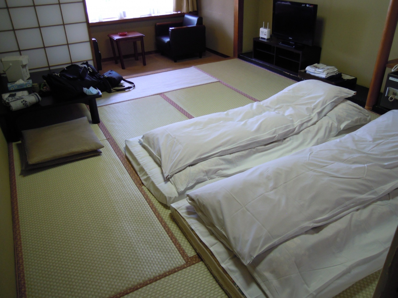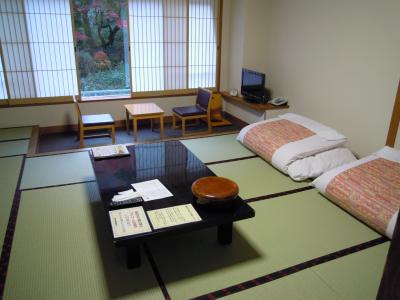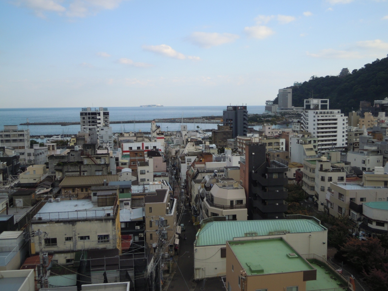 部屋はーシャンビュー10畳和室。二人旅でゆったり過ごせる。楽しみな温泉は本館11Fに展望露天風呂と地下2Fに大浴場、さらに別館3Fに岩露天風呂といろんな温泉を楽しめる。