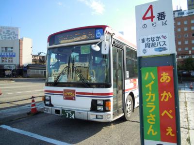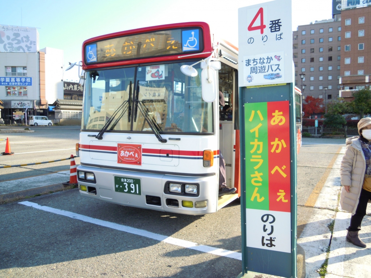 会津若松駅を起点に反時計回りが「ハイカラさん」(30分ごとに発車)、時計回りが「あかべぇ」(1時間に1本)。市内の各所を巡ってくれます。
