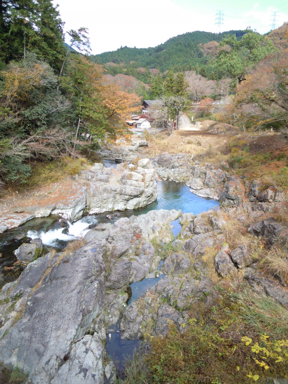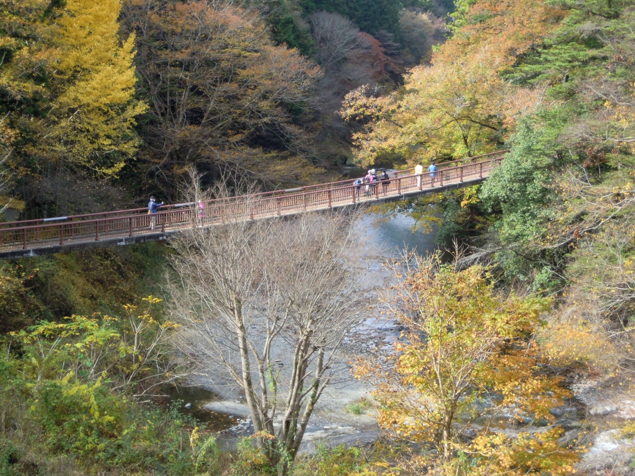 西東京バス「十里木」~秋川渓谷・石舟橋~を散策して行くと自然にこの「瀬音の湯」に到着します。辺りは紅葉に包まれ、バス停近くには足湯も用意されて、皆さんの寛いでいる様子がうかがえます。
