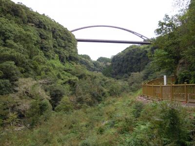 レンタカーで佐多岬見学後に立ち寄りました。まず滝を上から眺められる「上流展望台」へ。堰き止められたダムから流れ出す勇壮な滝を上から見られました。