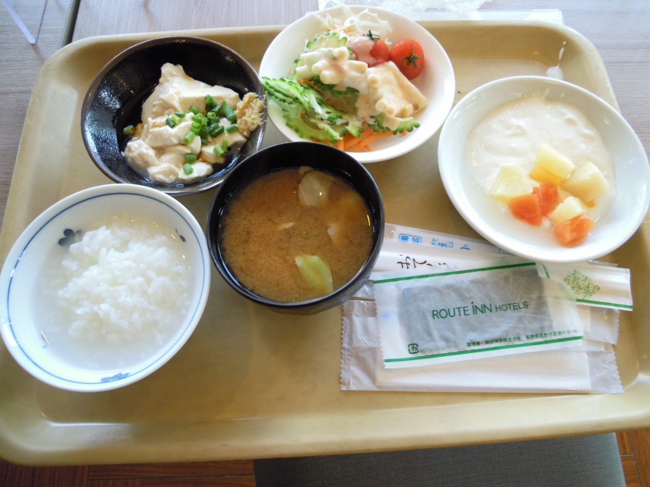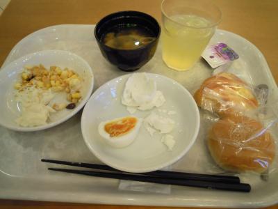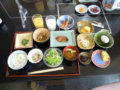 朝食はおにぎり、各種パン、サラダ、スープ、コーヒー等、すぐ近くにコンビニがあって買い出しにも便利。駐車料金1泊1000円。- 旅行時期
