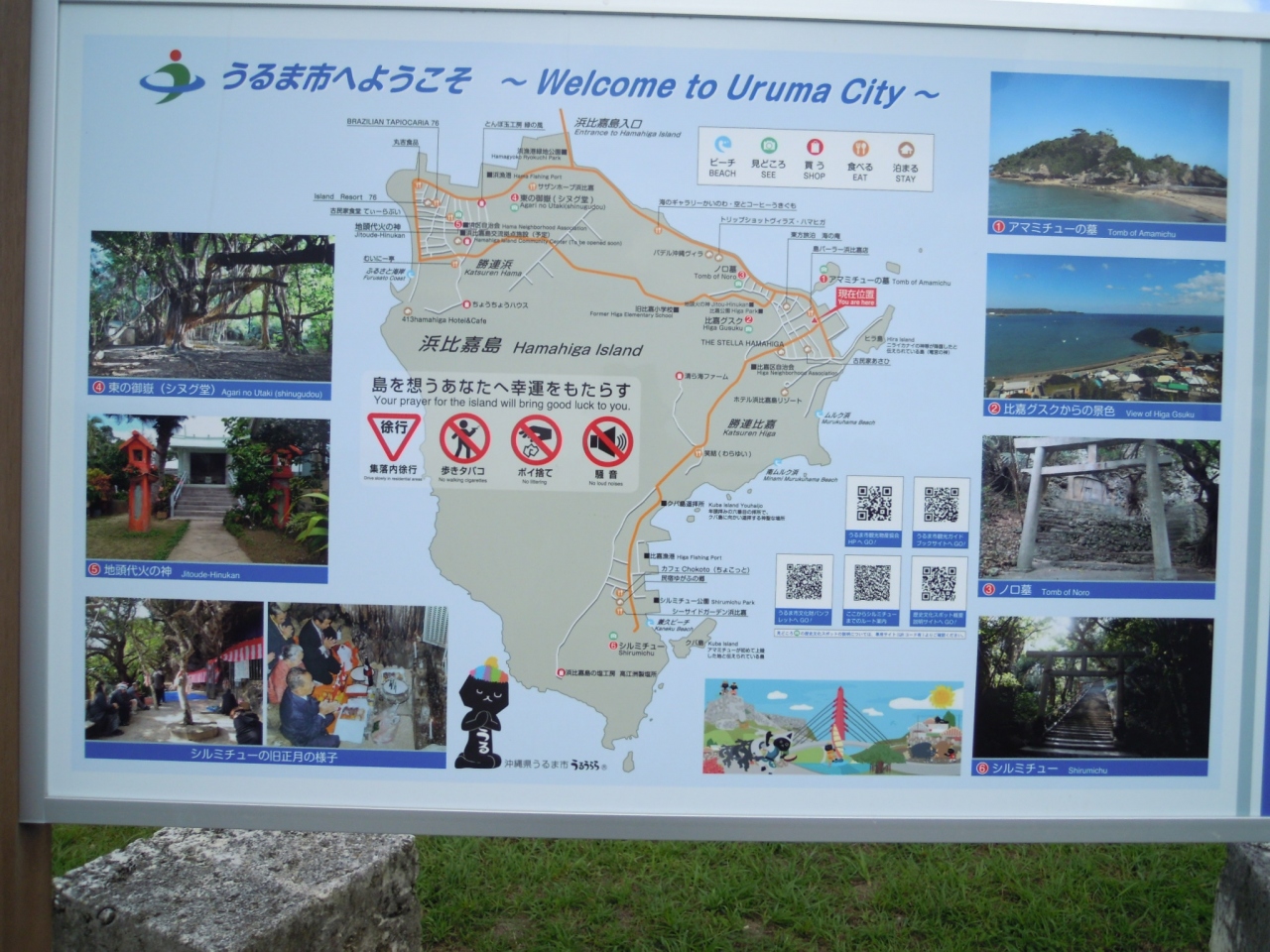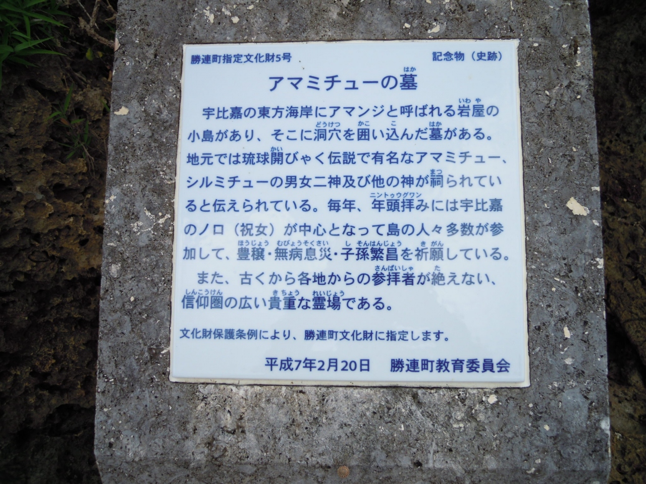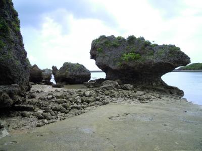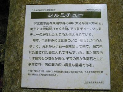 伊計島への海中道路を進んで行くと、この浜比嘉島に通じる。海岸からの絶景があちこちで眺めることができる。中でも霊場である「アマミチューの墓」やパワースポットでもある「シルミチュー」でしばし足を止めて手を岩肌に当ててパワー注入させてもらった。
