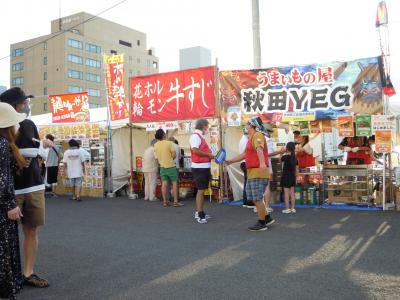 会場近くには「竿灯屋台村」や「ご当地グルメフェスティバス」などの飲食店が軒を並べて、見学前に利用しました。