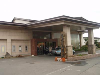 田沢湖駅→路線バス50分終点、目の前が旅館。ひなびた佇まい(小学校校舎の改装)。