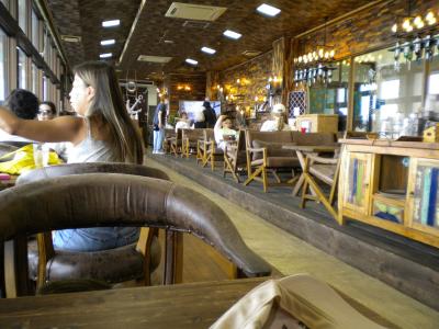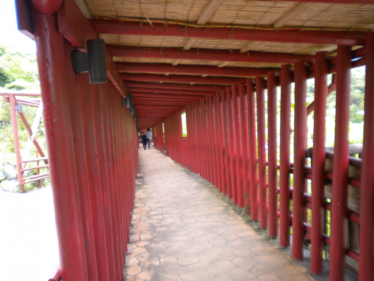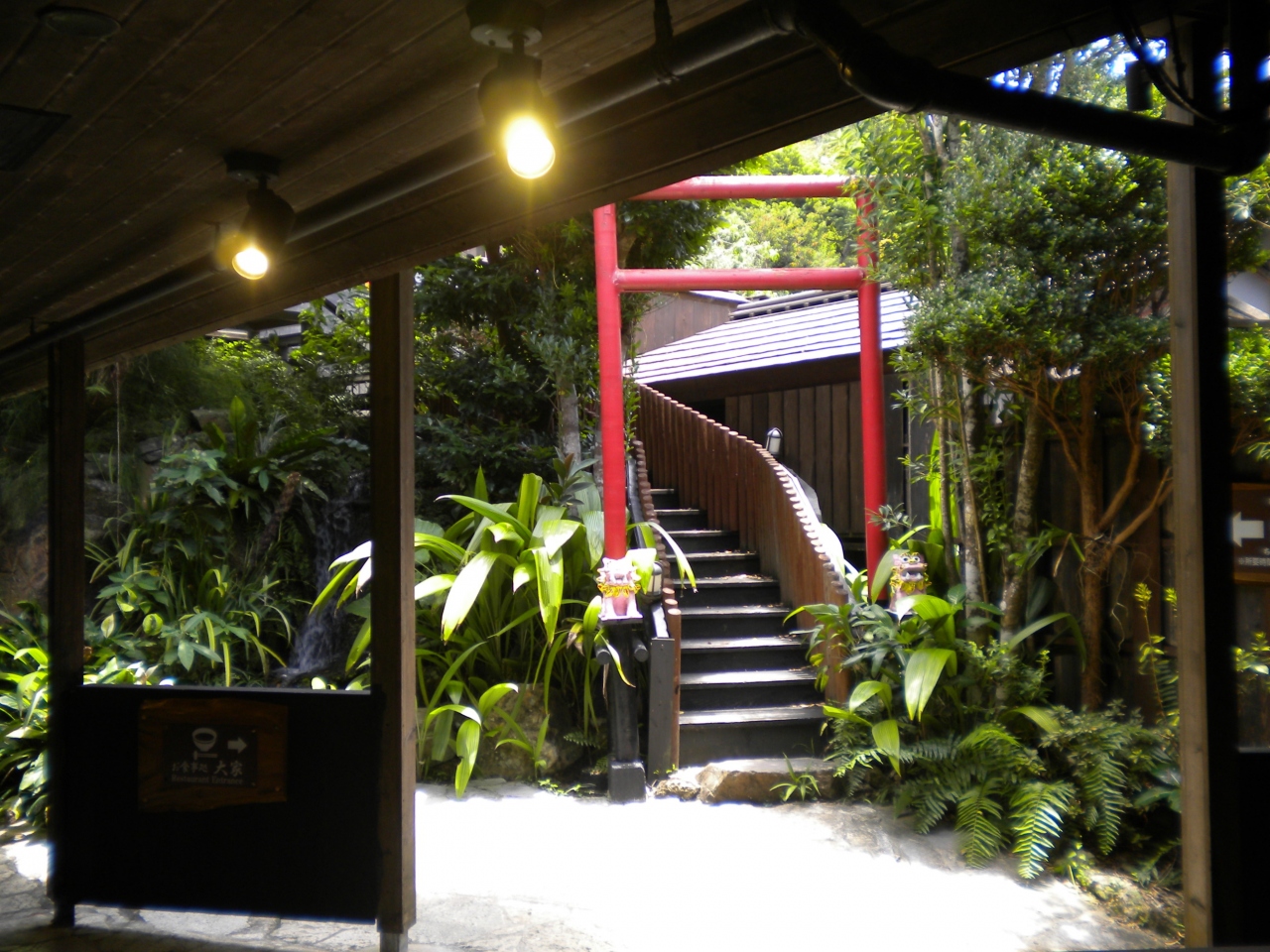 ネットで調べた佇まいと料理が期待されるお店。「やんばる亜熱帯恐竜の森」散策後、お腹を空かせて訪問しました。一番最初の入り口から長い鳥居をくぐりながらに行くとまた入り口が・・・。やっとの思いで到着するとすごい数のお客さん、1時間近くの待ち時間でしたが40分ほどで案内されました。