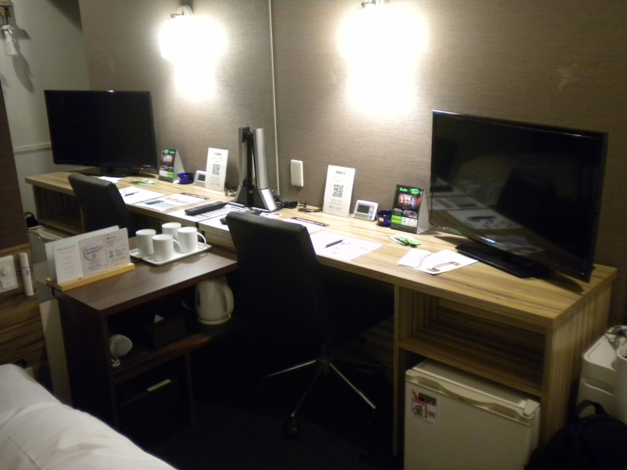 ごく一般的なビジネスホテルだが、ウェルカムドリンクに缶ビールの提供を受ける。