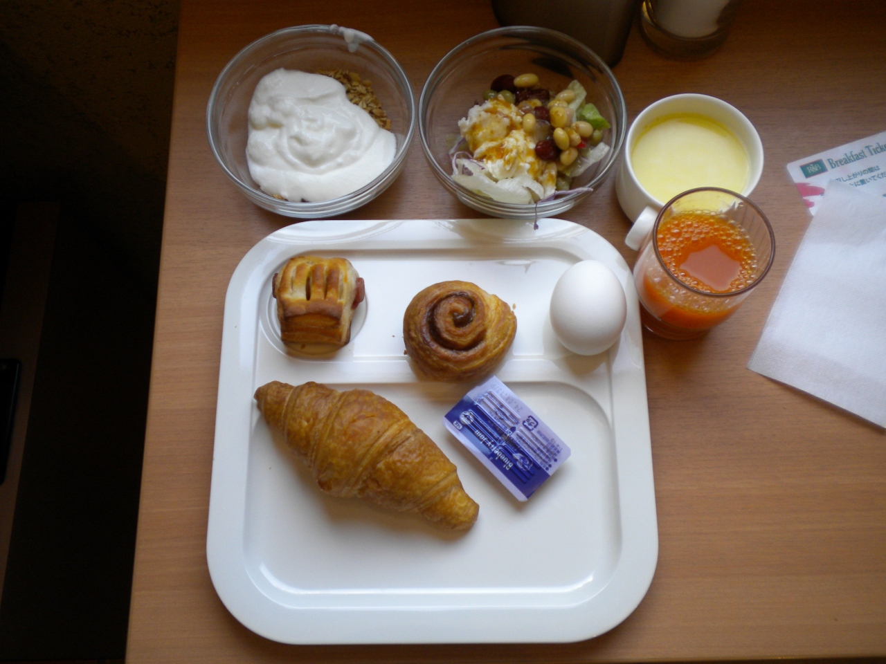 朝食はビュッフェスタイルで何といっても『焼きたてパン』は種類も多く、とてもおいしい。普通のビジネスホテルだが価格の割にはまた利用したいホテルです。- 旅行時期