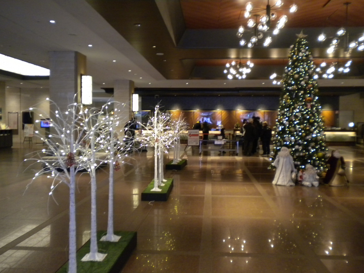 折しもクリスマスムードで飾りつけもされている。部屋は一人旅ながらもツインルーム